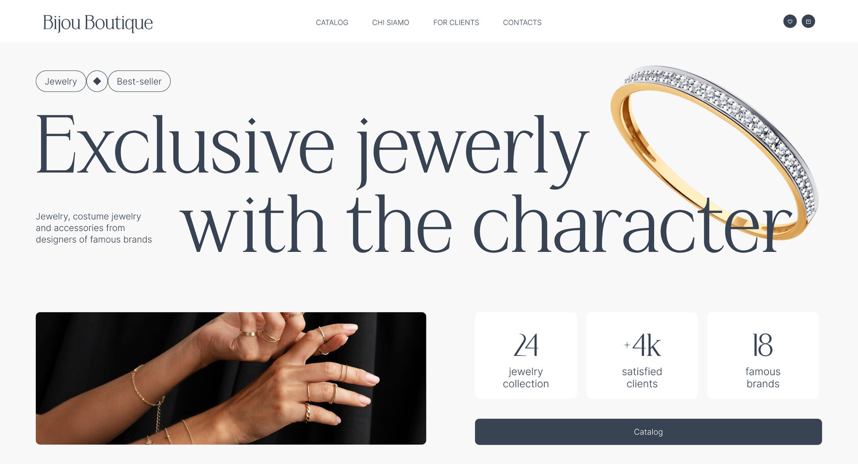 Разработка дизайна сайта и верстка на Tilda для учебного курса по созданию сайтов. Одно из пожеланий — создание современного дизайна, передающего настроение легкости и изящности. Было важно создать дизайн с функционалом, который можно сверстать на Tilda.